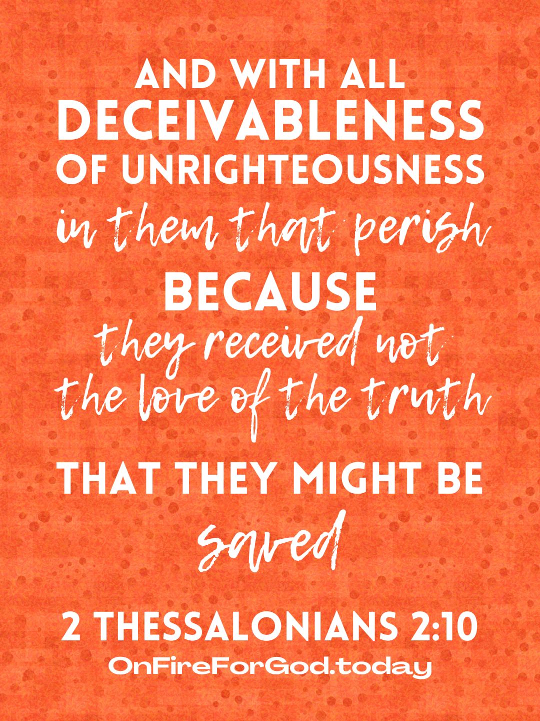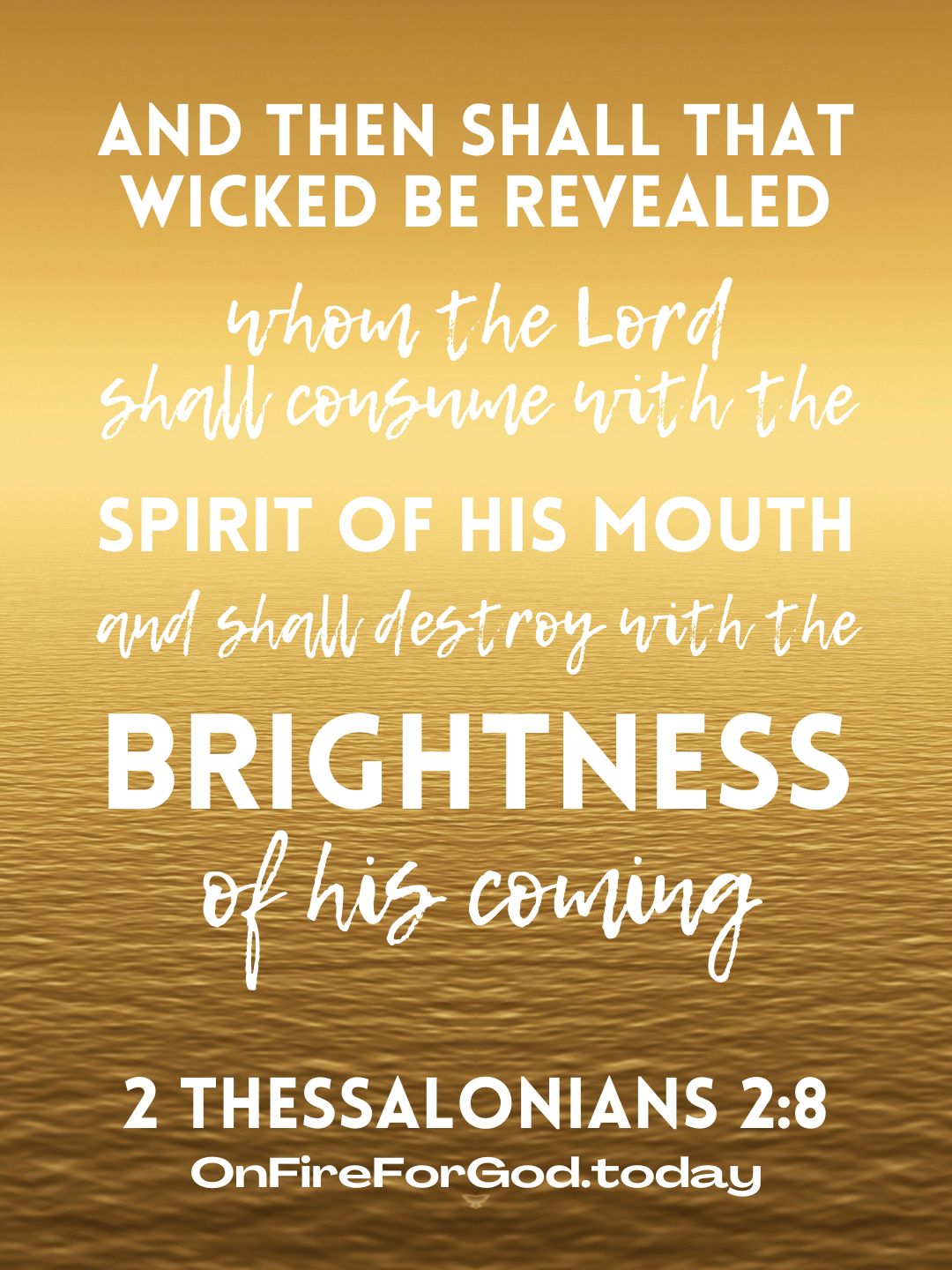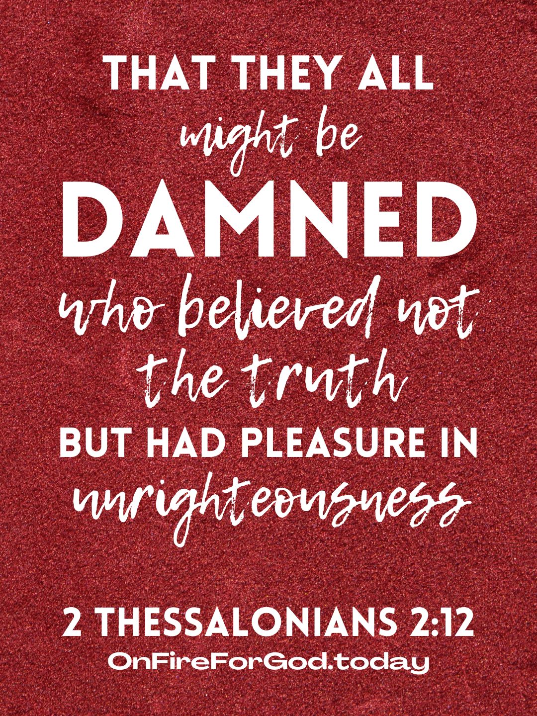 And then shall that Wicked be revealed, whom the Lord shall consume with the spirit of his mouth, and shall destroy with the brightness of his coming: Even him, whose coming is after the working of Satan with all power and signs and lying wonders, And with all deceivableness of unrighteousness in them that perish; because they received not the love of the truth, that they might be saved. And for this cause God shall send them strong delusion, that they should believe a lie: That they all might be damned who believed not the truth, but had pleasure in unrighteousness. (2 Thessalonians 2:8-12)